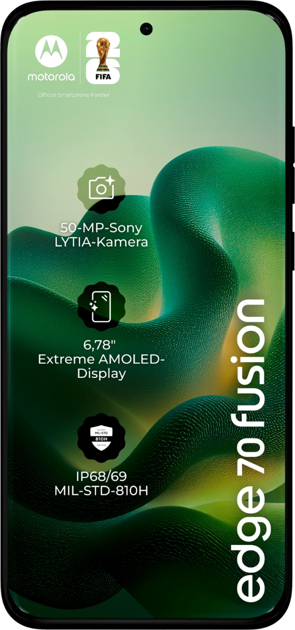 Das motorola edge 70 fusion hebt die wichtigsten Dinge auf ein ganz neues Level. Das makellose Quad-Curved-Design schafft einen eleganten, raffinierten Look und eine natürlich luxuriöse Haptik. Und trotz seines flachen, eleganten Designs ist es vollgepackt mit Funktionen. Kameras auf Profi-Niveau für jede Aufnahme, angefangen beim Sony LYTIA 710-Sensor. Ein intelligenterer Assistent in der Tasche, der alltägliche Aufgaben leichter macht. Und eine lange Akkulaufzeit mit blitzschneller TurboPower-Aufladung. Du gehst gerne auf Entdeckungstouren? Mit Widerstandsfähigkeit nach Militärstandard und Unterwasserschutz kannst du sorglos losziehen. Und all das plus ein 6,78-Zoll-Super-HD-Display mit Pantone Validated-Farben und Hauttönen, unschlagbare Snapdragon-Leistung und jede Menge Speicherplatz für deine Inhalte und Kreationen. Das neue motorola edge 70 fusion ist einfach perfekt.